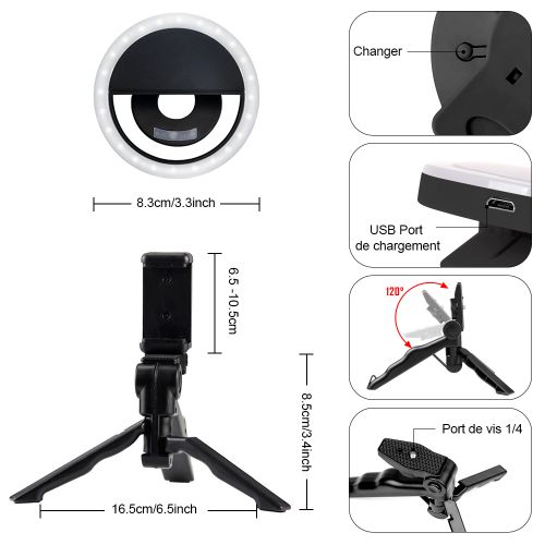 ARHANORY Support De Trépied Téléphone Selfie Anneau Lumineux-Noir